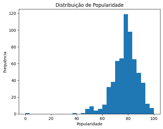 Falta plotarmos o histograma da variável 'popularity'. Na Figura 6 temos o código para isso, enquanto na Figura 7 apresentamos o resultado obtido.