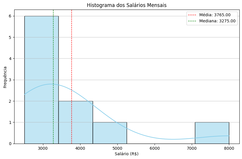 Dois jovens prestes a se formarem em Análise e Desenvolvimento de Sistemas queriam saber como estava a questão salarial da carreira que eles haviam escolhido cursar na graduação. Para isso, eles coletaram os dados salariais mensais líquidos (em reais) de 10 funcionários de uma startup da cidade deles, resultando na Tabela 1.
